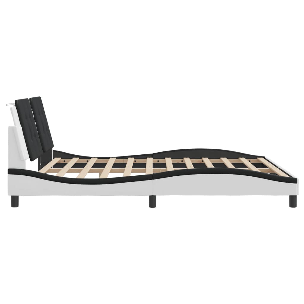 Cadru de pat cu LED, alb și negru, 180x200 cm, piele ecologică GartenMobel Dekor