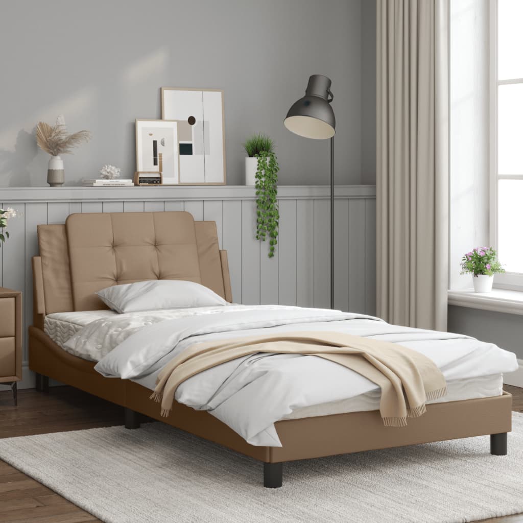 Cadru de pat cu LED, cappuccino, 100x200 cm, piele ecologică GartenMobel Dekor