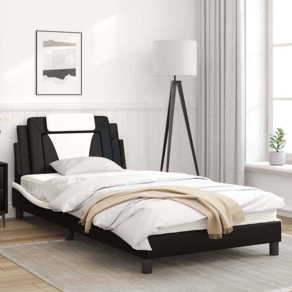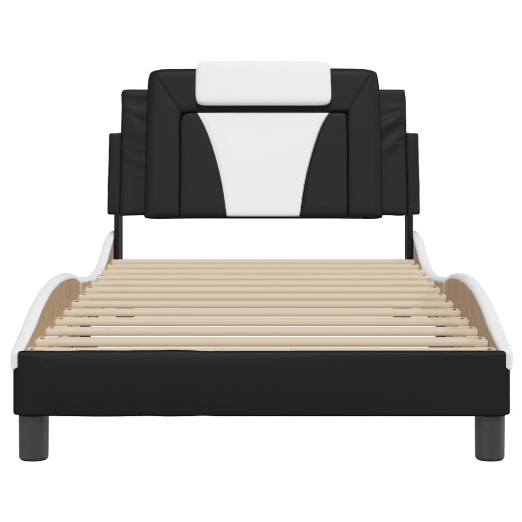 Cadru de pat cu LED, negru și alb, 100x200 cm, piele ecologică GartenMobel Dekor