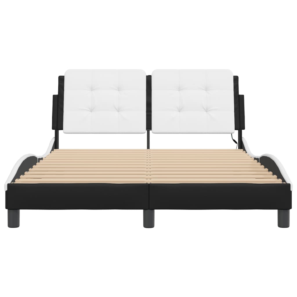 Cadru de pat cu LED, negru și alb, 140x200 cm, piele ecologică GartenMobel Dekor