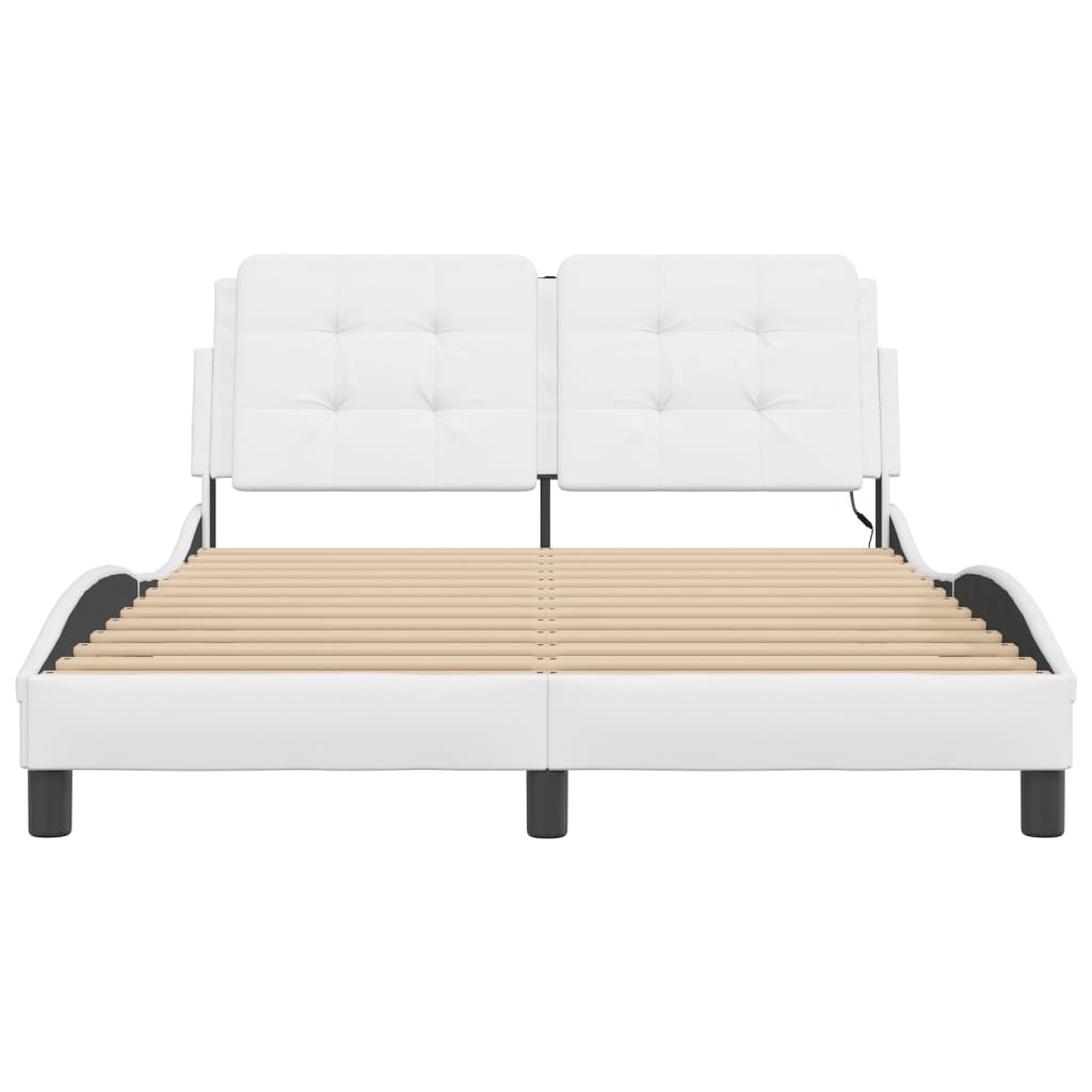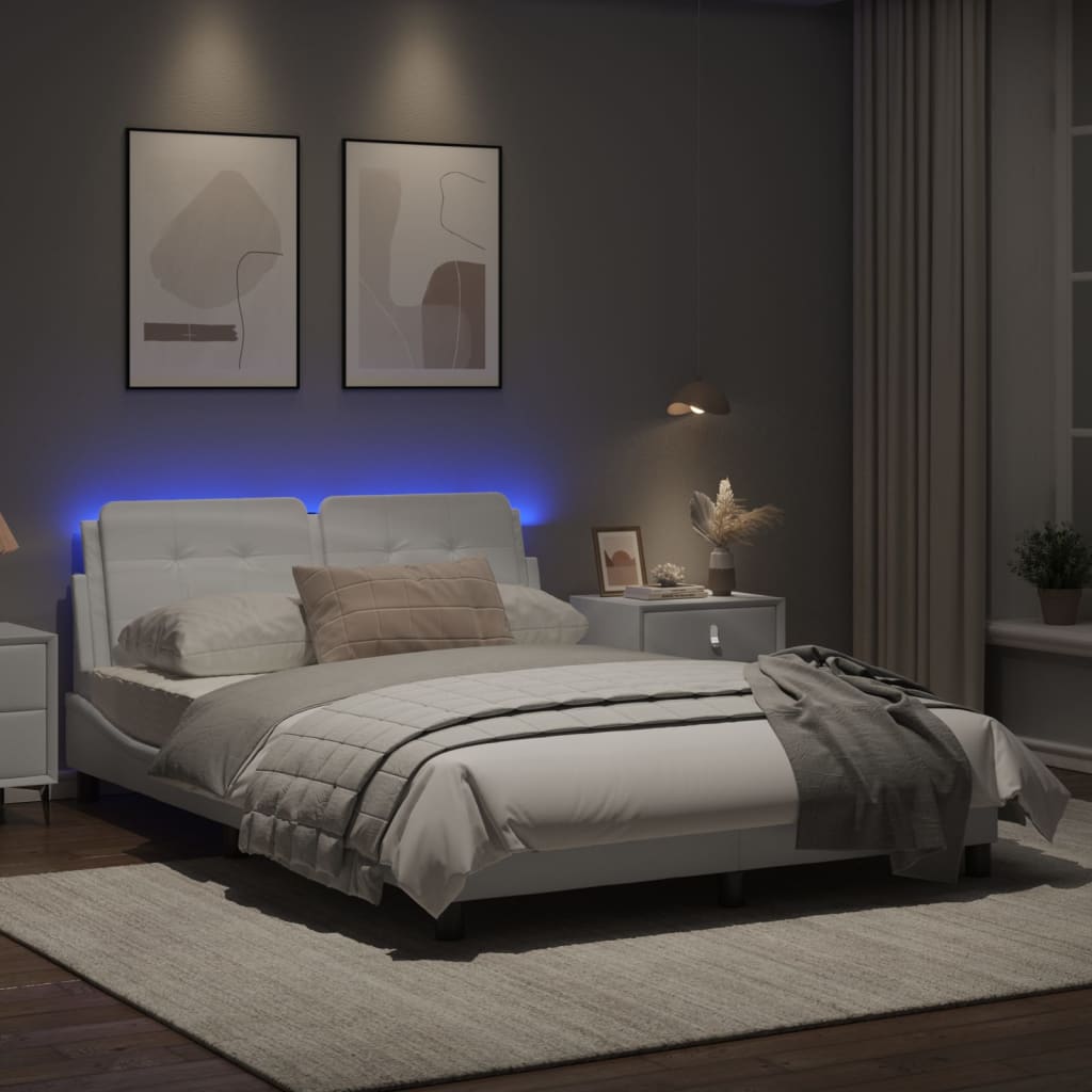 Cadru de pat cu lumini LED, alb, 140x190 cm, piele ecologică GartenMobel Dekor