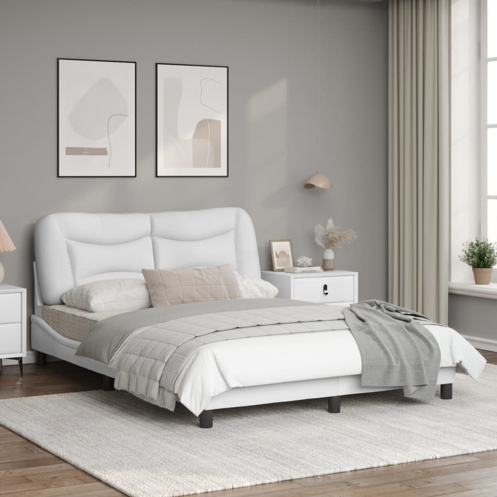 Cadru de pat cu lumini LED, alb, 140x190 cm, piele ecologică GartenMobel Dekor