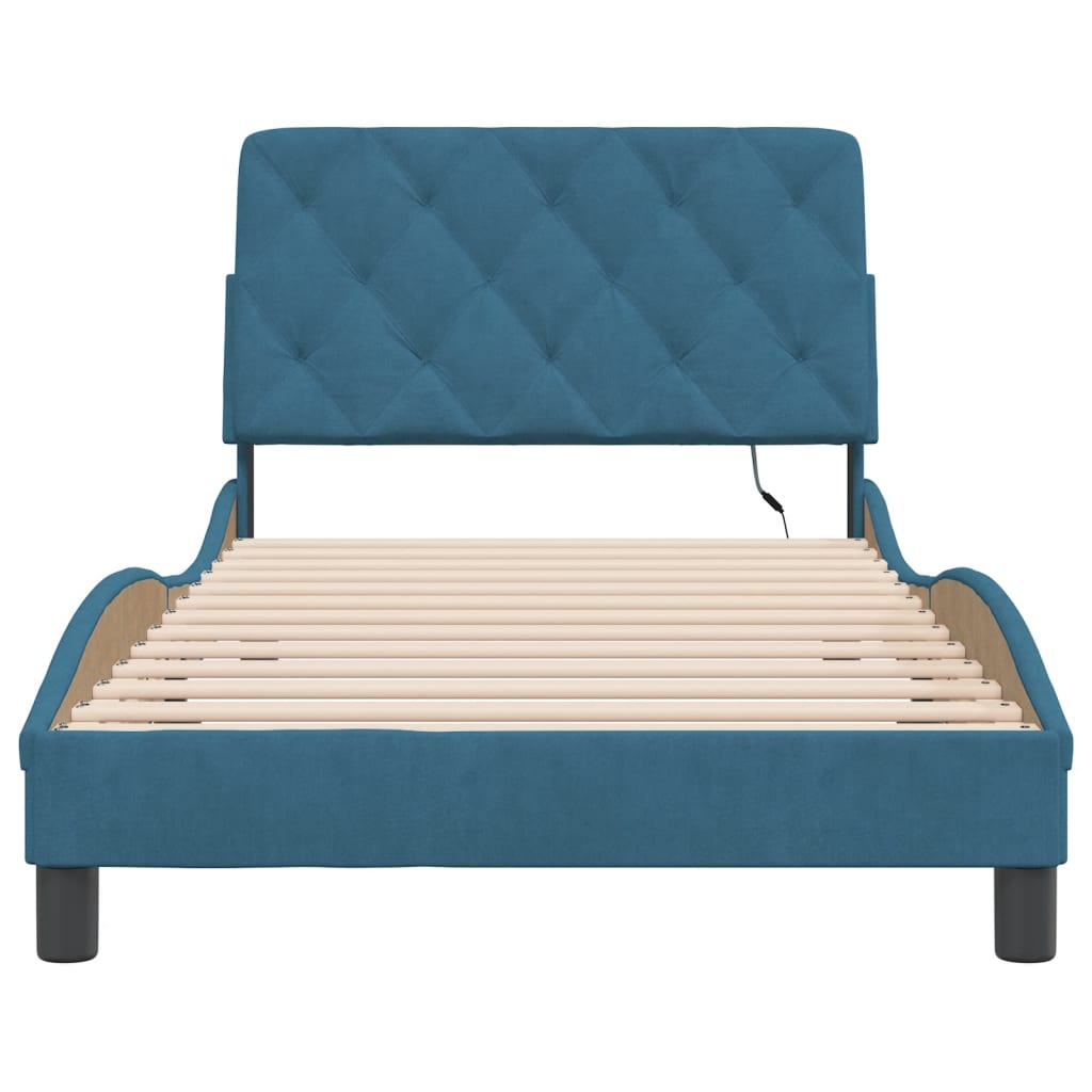 Cadru de pat cu lumini LED, albastru, 100x200 cm, catifea GartenMobel Dekor