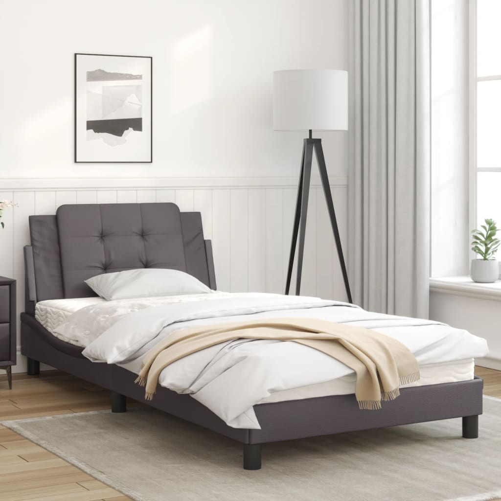 Cadru de pat cu lumini LED, gri, 100x200 cm, piele ecologică GartenMobel Dekor
