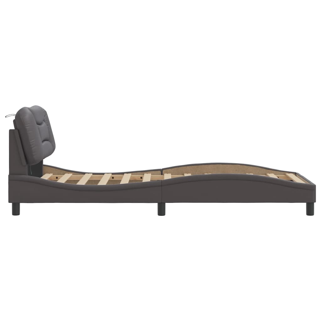 Cadru de pat cu lumini LED, gri, 90x190 cm, piele ecologică GartenMobel Dekor