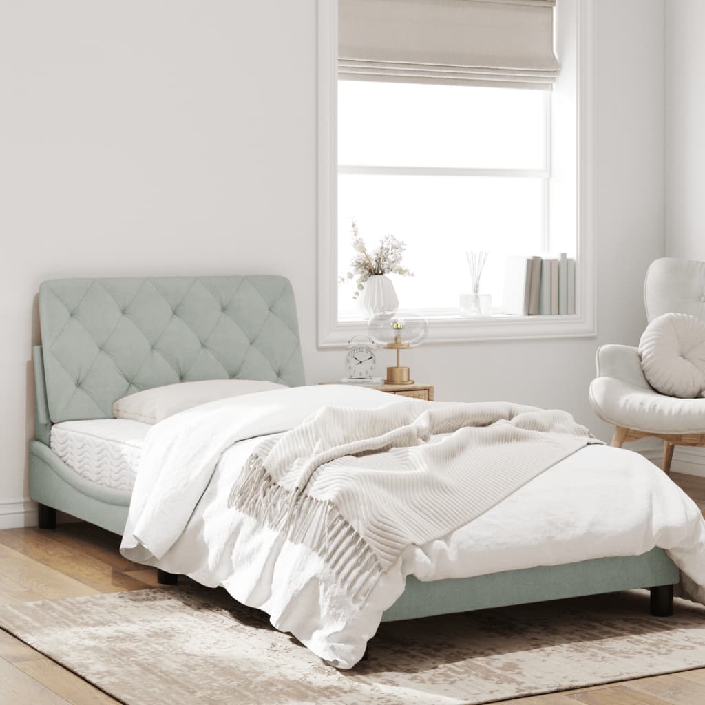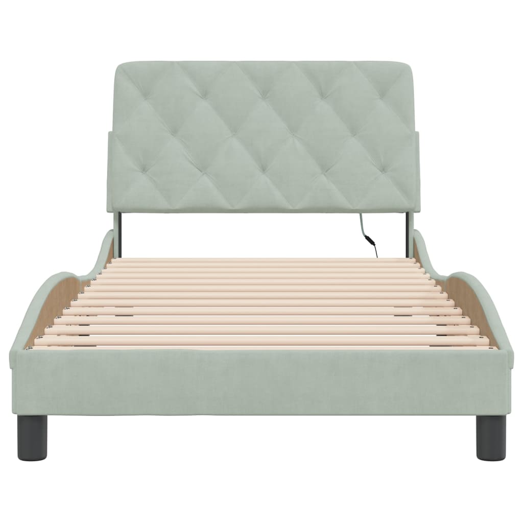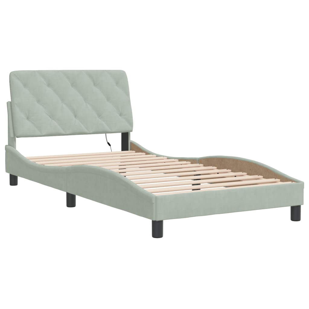Cadru de pat cu lumini LED, gri deschis, 100x200 cm, catifea GartenMobel Dekor