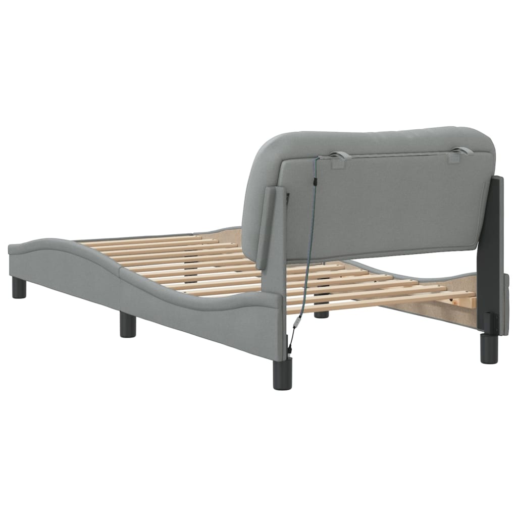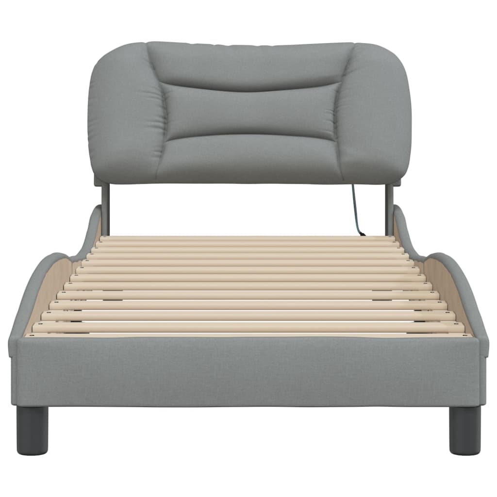 Cadru de pat cu lumini LED, gri deschis, 90x200 cm, textil GartenMobel Dekor