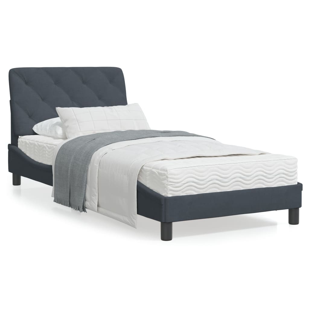 Cadru de pat cu lumini LED, gri închis, 152x203 cm, catifea GartenMobel Dekor