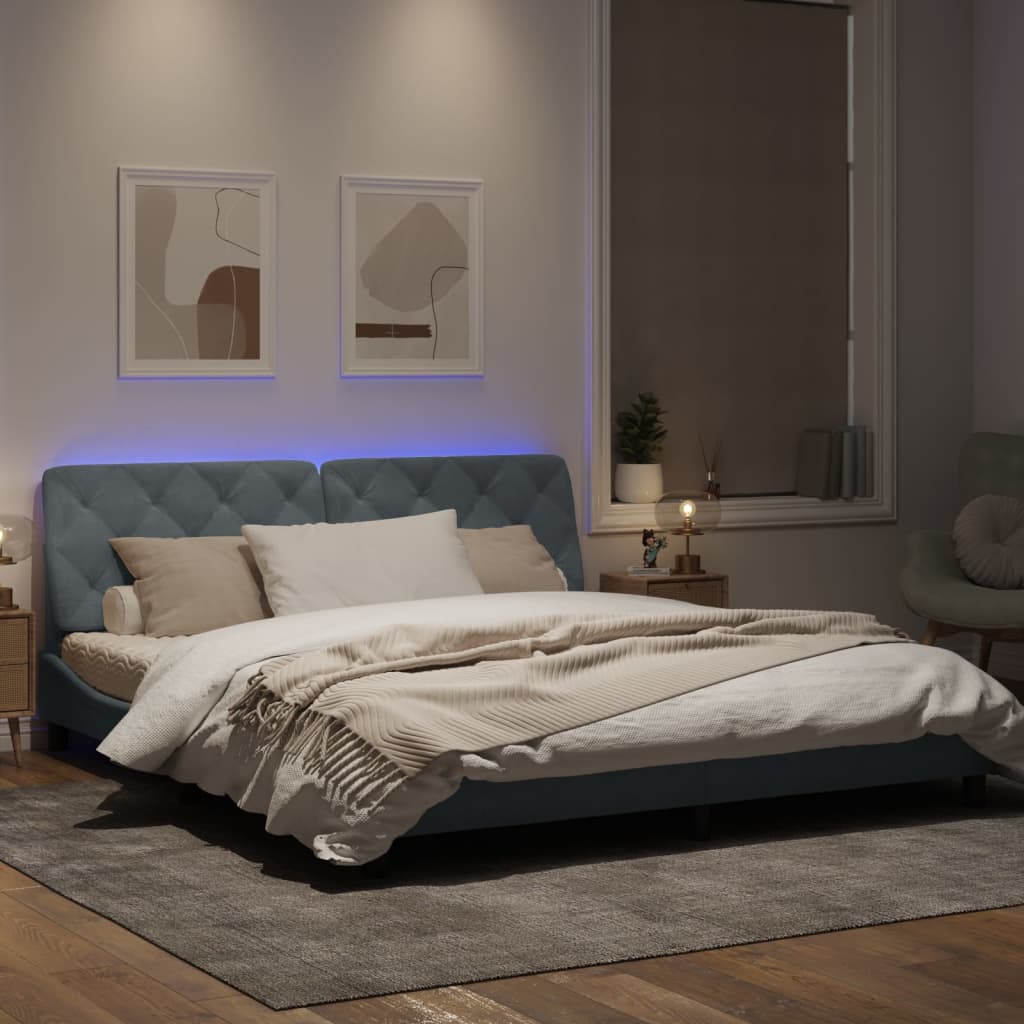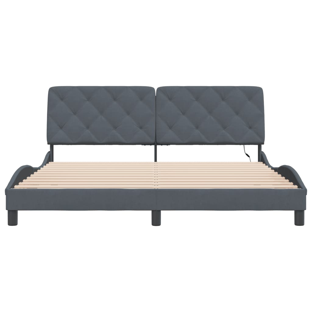 Cadru de pat cu lumini LED, gri închis, 180x200 cm, catifea GartenMobel Dekor