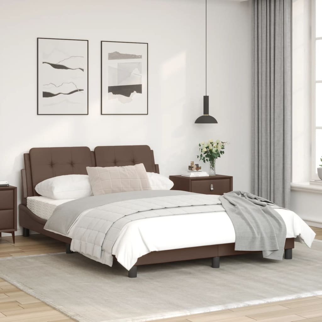 Cadru de pat cu lumini LED, maro, 120x200 cm, piele ecologică GartenMobel Dekor