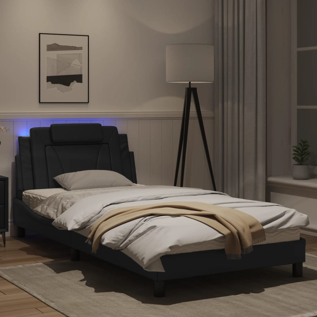 Cadru de pat cu lumini LED, negru, 100x200 cm, piele ecologică GartenMobel Dekor