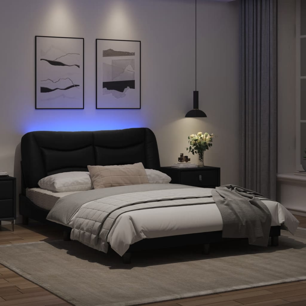 Cadru de pat cu lumini LED, negru, 140x190 cm, piele ecologică GartenMobel Dekor