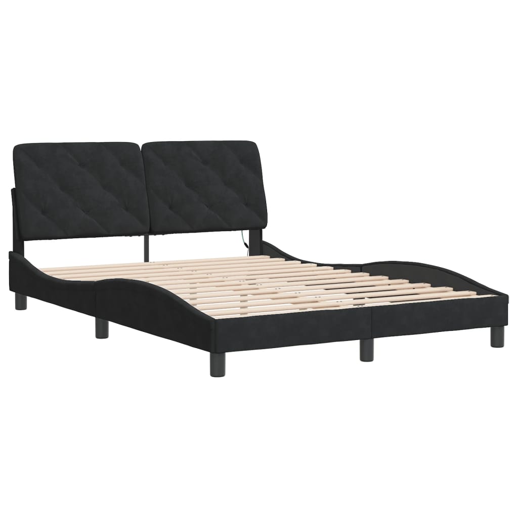 Cadru de pat cu lumini LED, negru, 140x200 cm, catifea GartenMobel Dekor