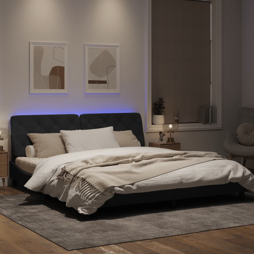 Cadru de pat cu lumini LED, negru, 180x200 cm, catifea GartenMobel Dekor