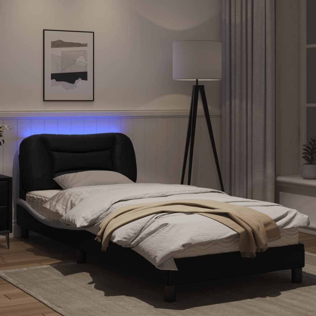 Cadru de pat cu lumini LED negru/alb 90x200 cm piele ecologică GartenMobel Dekor