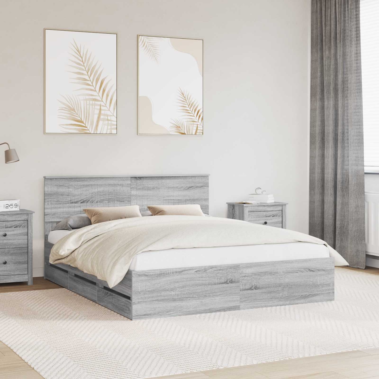 Cadru de pat cu sertar Gri Sonoma 160 x 200 cm Lemn Ingineresc GartenMobel Dekor