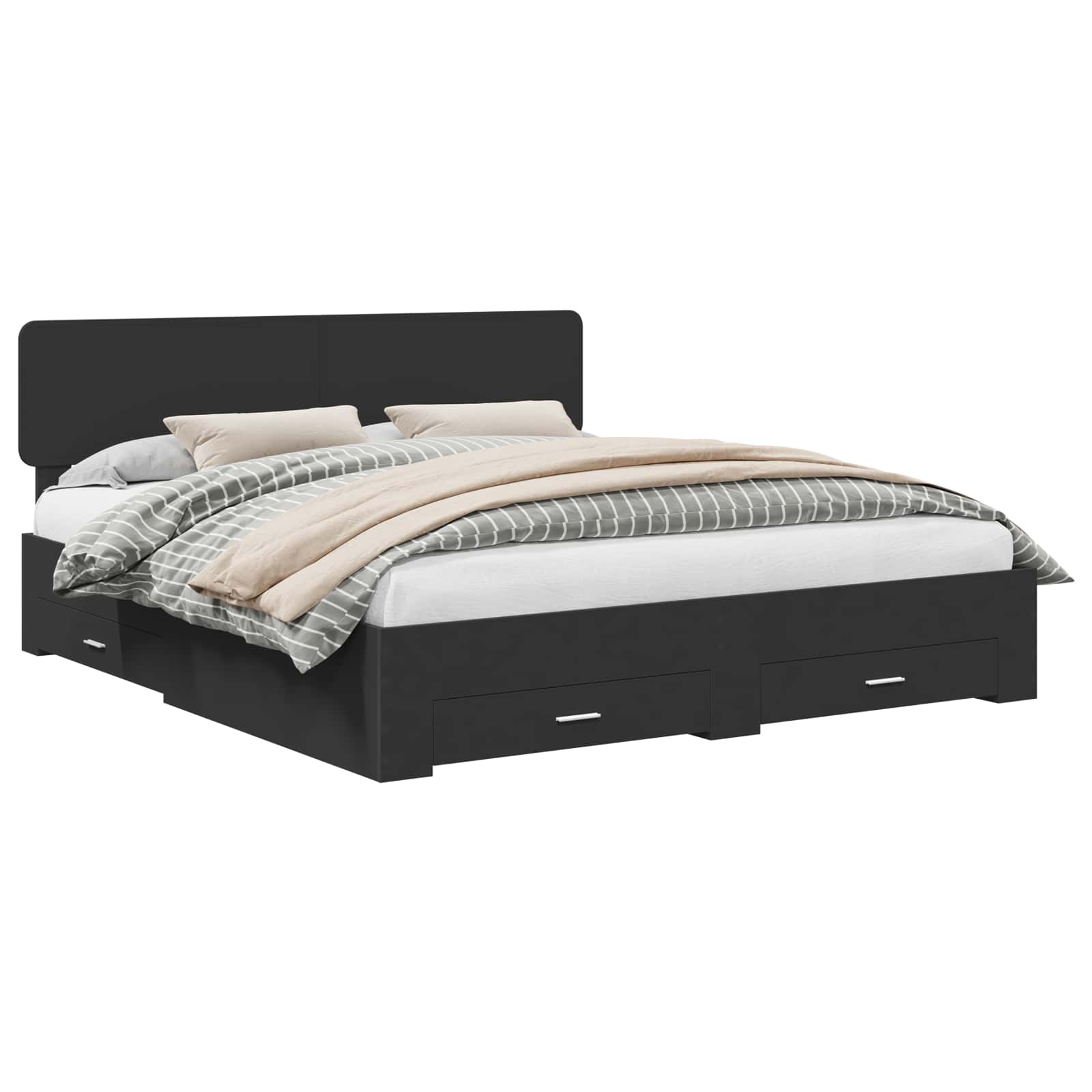 Cadru de pat cu sertar Negru 200 x 200 cm Lemn compozit GartenMobel Dekor