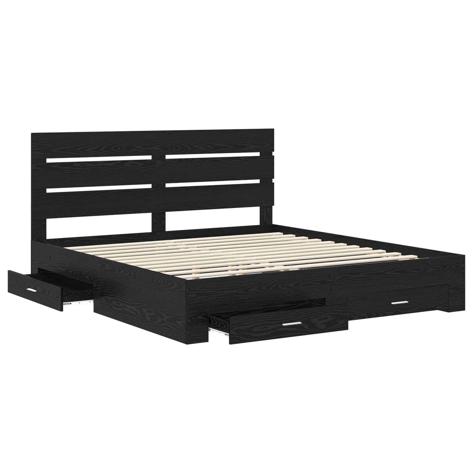 Cadru de pat cu sertar Stejar Negru 180 x 200 cm Lemn compozit GartenMobel Dekor