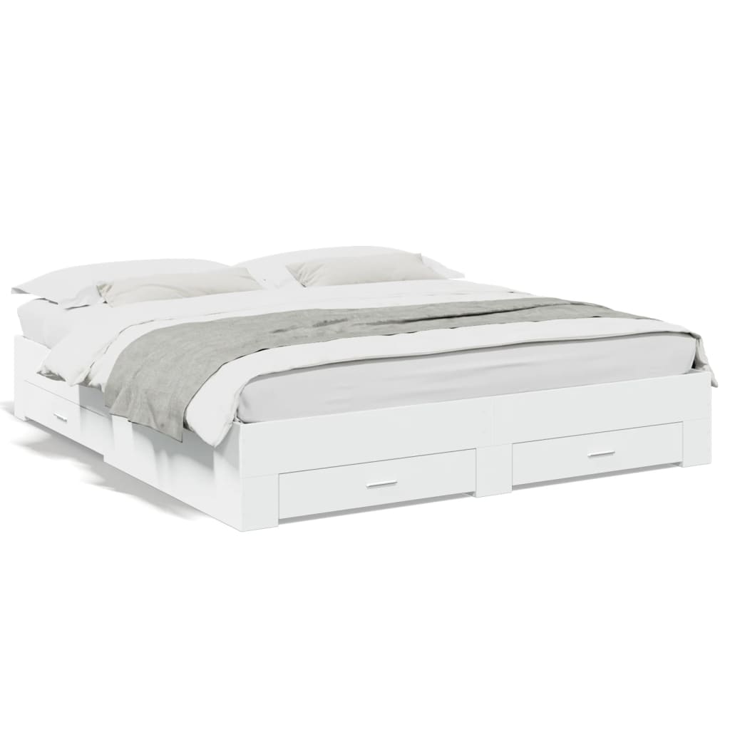 Cadru de pat cu sertare, alb, 180x200 cm, lemn prelucrat GartenMobel Dekor