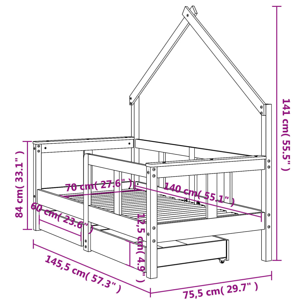 Cadru de pat cu sertare de copii, 70x140 cm, lemn masiv de pin GartenMobel Dekor