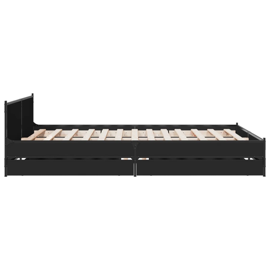 Cadru de pat cu sertare, negru, 135x190 cm, lemn prelucrat GartenMobel Dekor