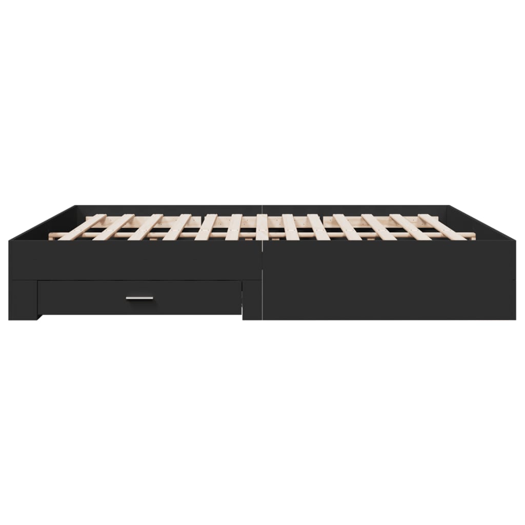 Cadru de pat cu sertare negru 200x200 cm lemn prelucrat GartenMobel Dekor