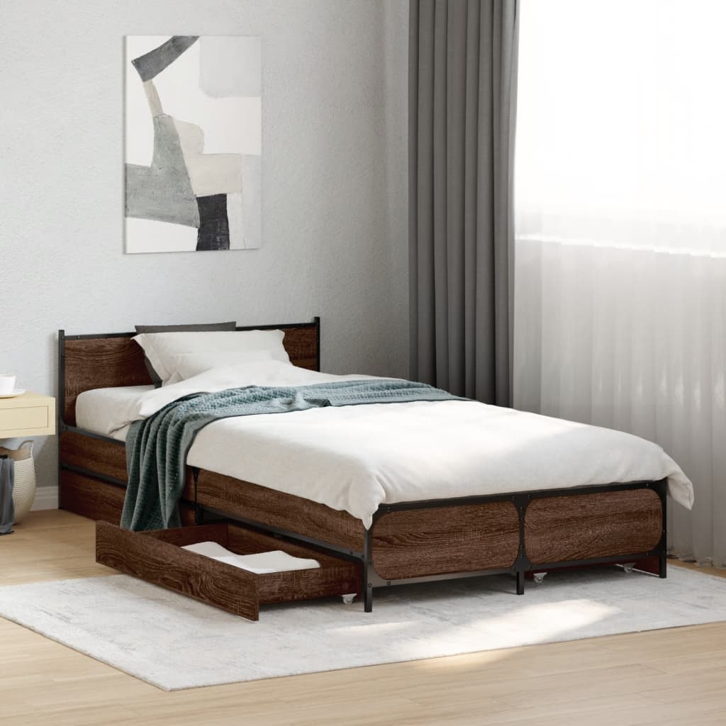 Cadru de pat cu sertare stejar maro 75x190 cm lemn prelucrat GartenMobel Dekor