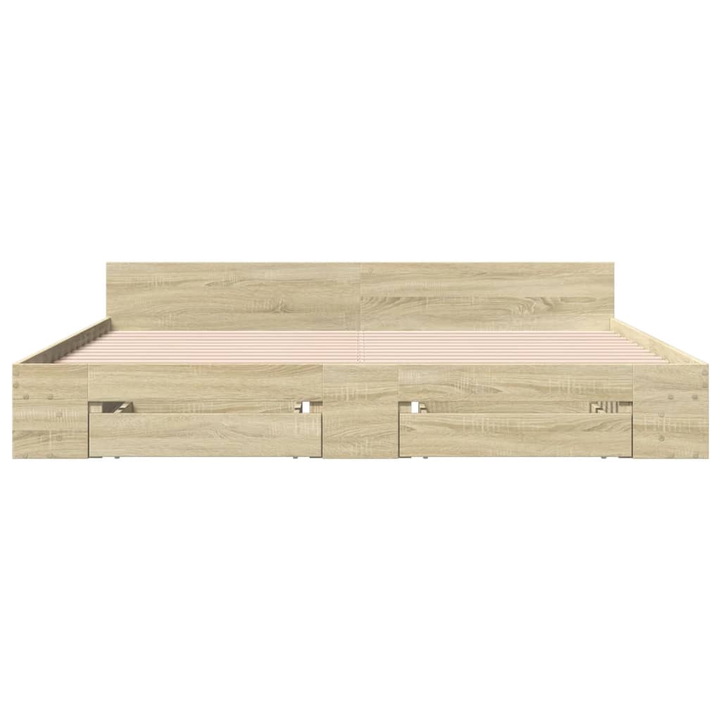 Cadru de pat cu sertare stejar sonoma 200x200 cm lemn prelucrat GartenMobel Dekor