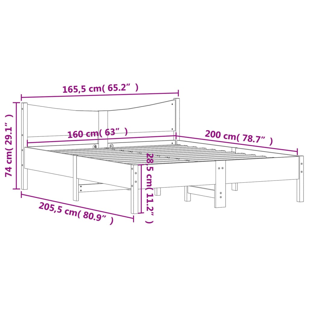 Cadru de pat cu tăblie, 160x200 cm, lemn masiv de pin GartenMobel Dekor