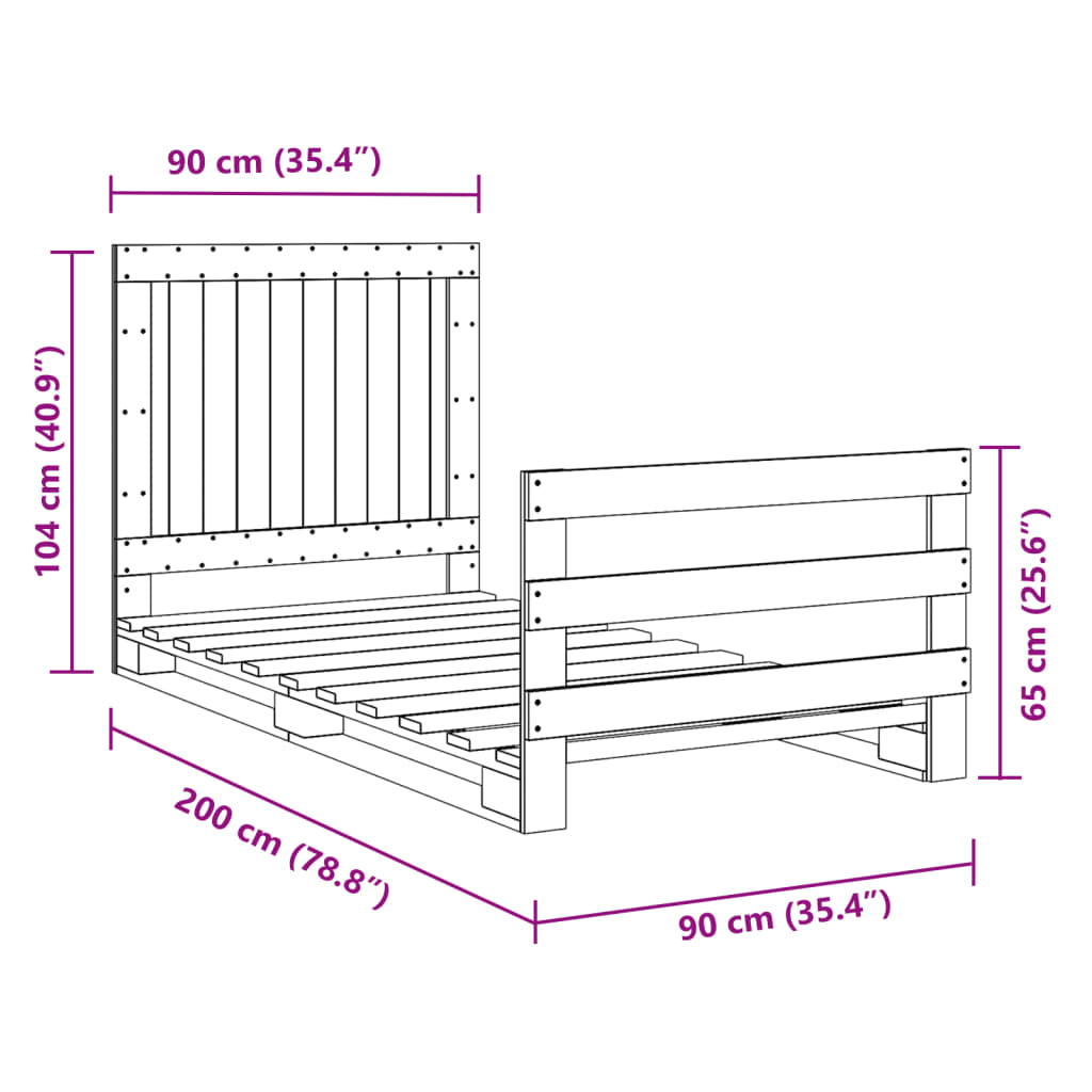 Cadru de pat cu tăblie, 90x200 cm, lemn masiv de pin GartenMobel Dekor