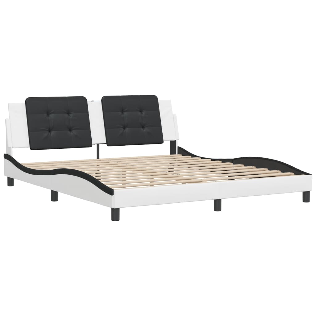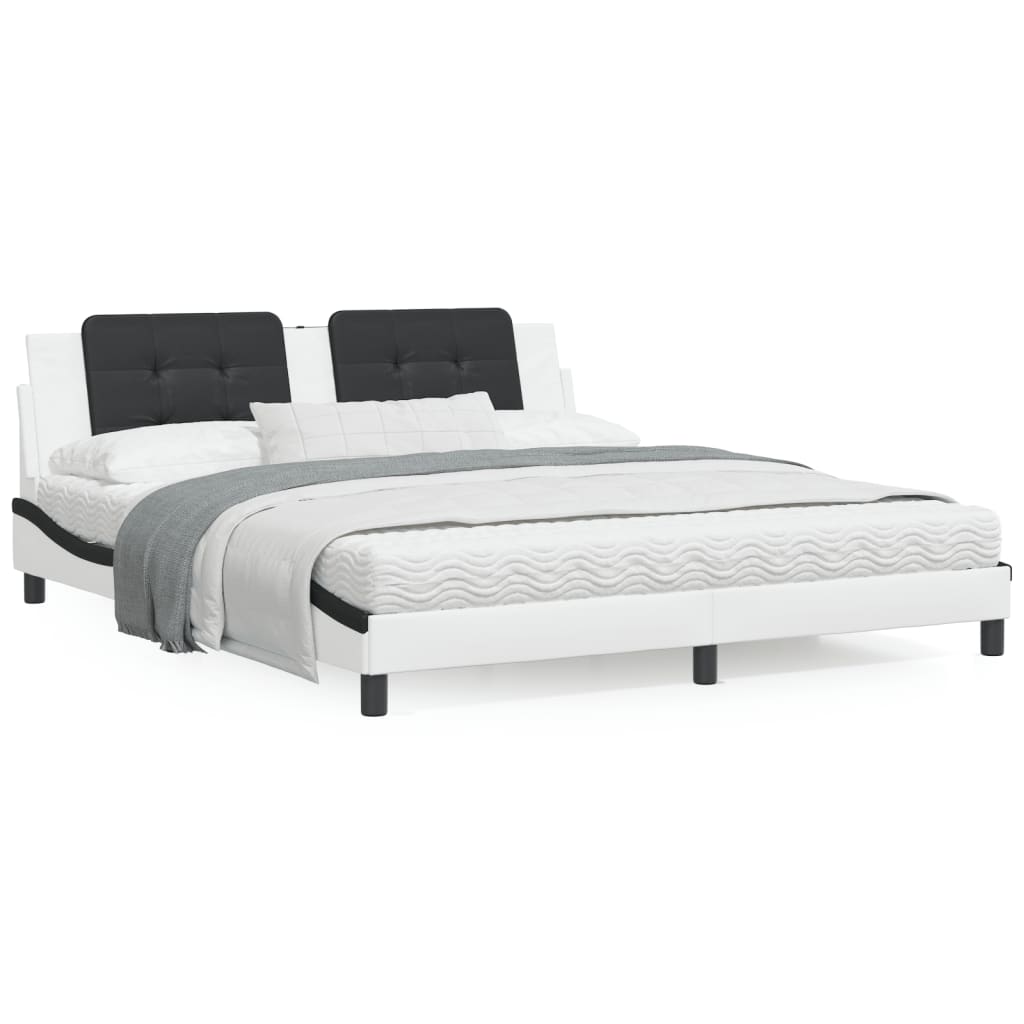 Cadru de pat cu tăblie alb și negru 180x200cm piele artificială GartenMobel Dekor