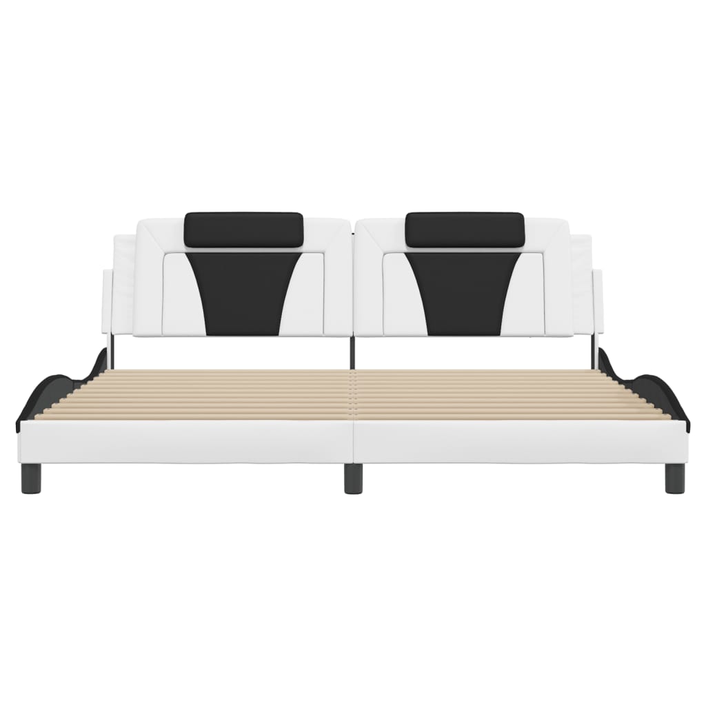 Cadru de pat cu tăblie alb și negru 200x200cm piele artificială GartenMobel Dekor