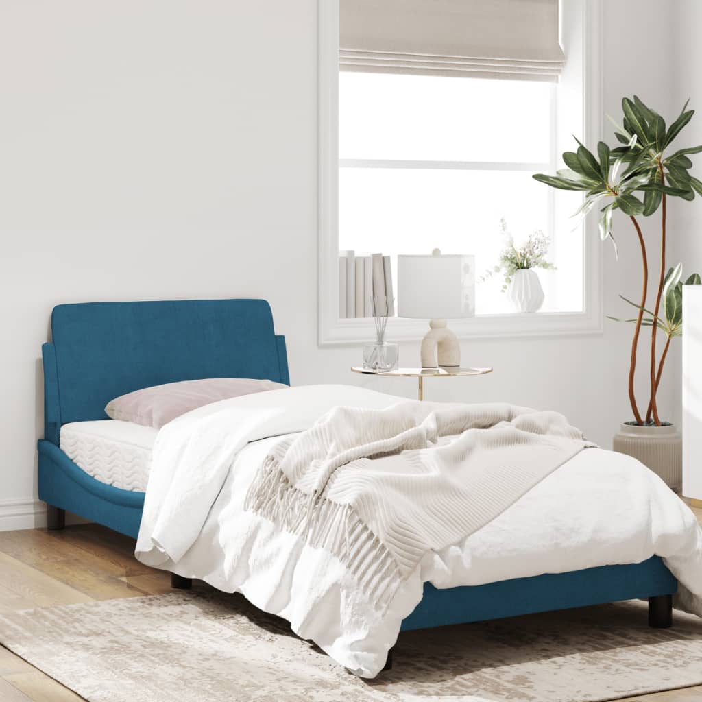 Cadru de pat cu tăblie, albastru, 80x200 cm, catifea GartenMobel Dekor