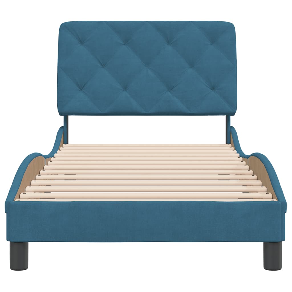 Cadru de pat cu tăblie, albastru, 90x200 cm, catifea GartenMobel Dekor