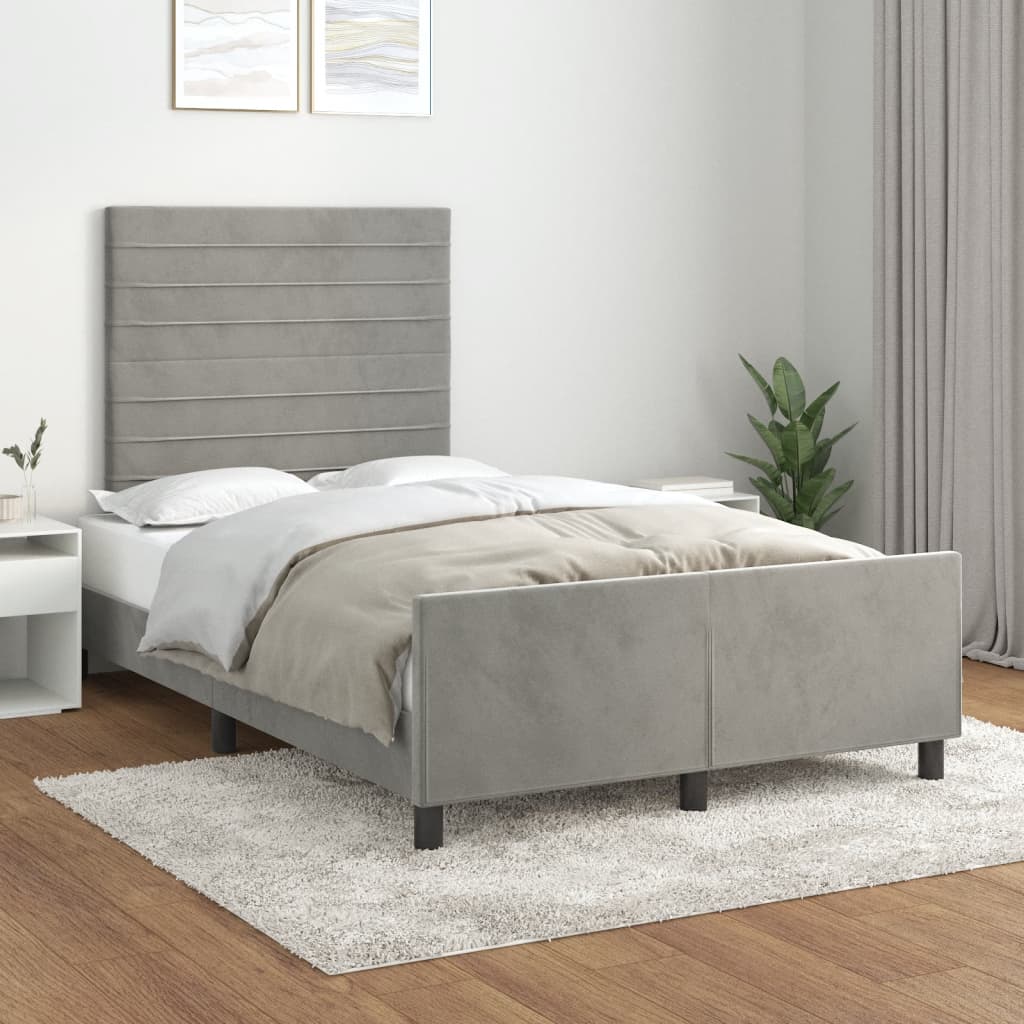 Cadru de pat cu tăblie, gri deschis, 120x190cm, catifea GartenMobel Dekor
