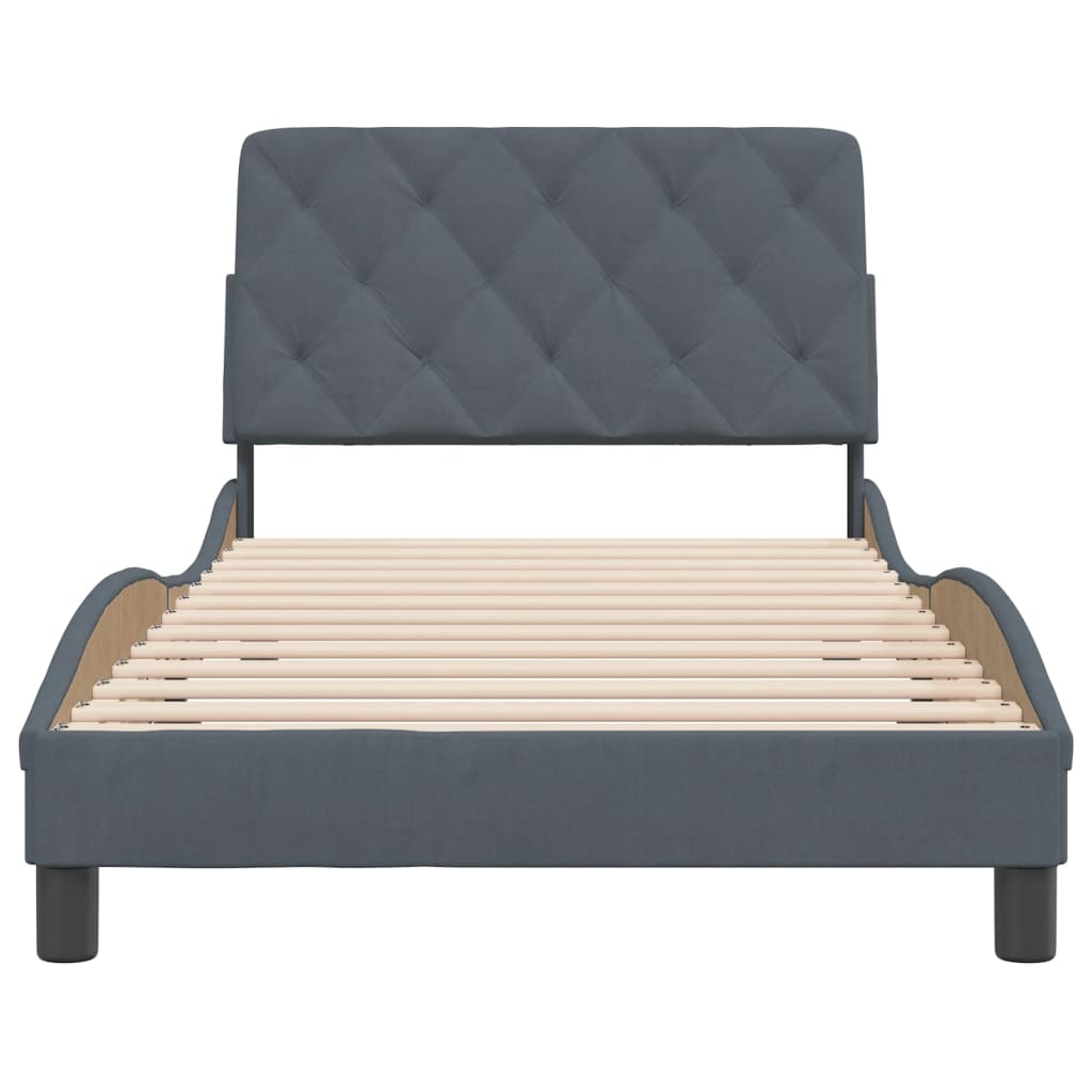 Cadru de pat cu tăblie, gri închis, 100x200 cm, catifea GartenMobel Dekor