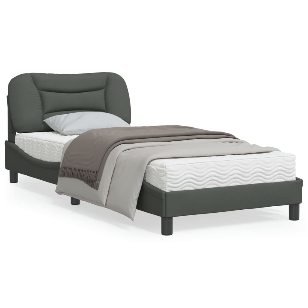 Cadru de pat cu tăblie, gri închis, 90x200 cm, textil GartenMobel Dekor