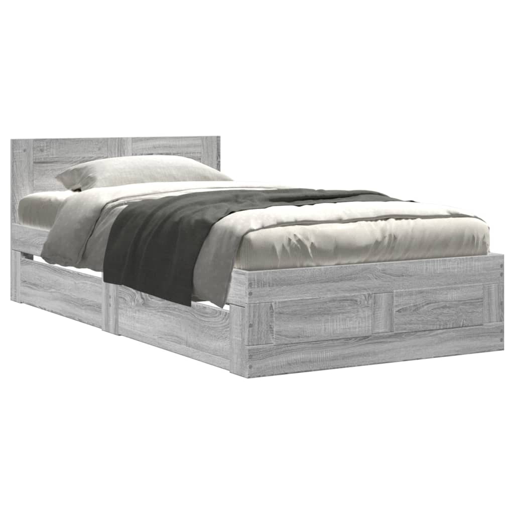 Cadru de pat cu tăblie, gri sonoma, 90x190 cm, lemn prelucrat GartenMobel Dekor
