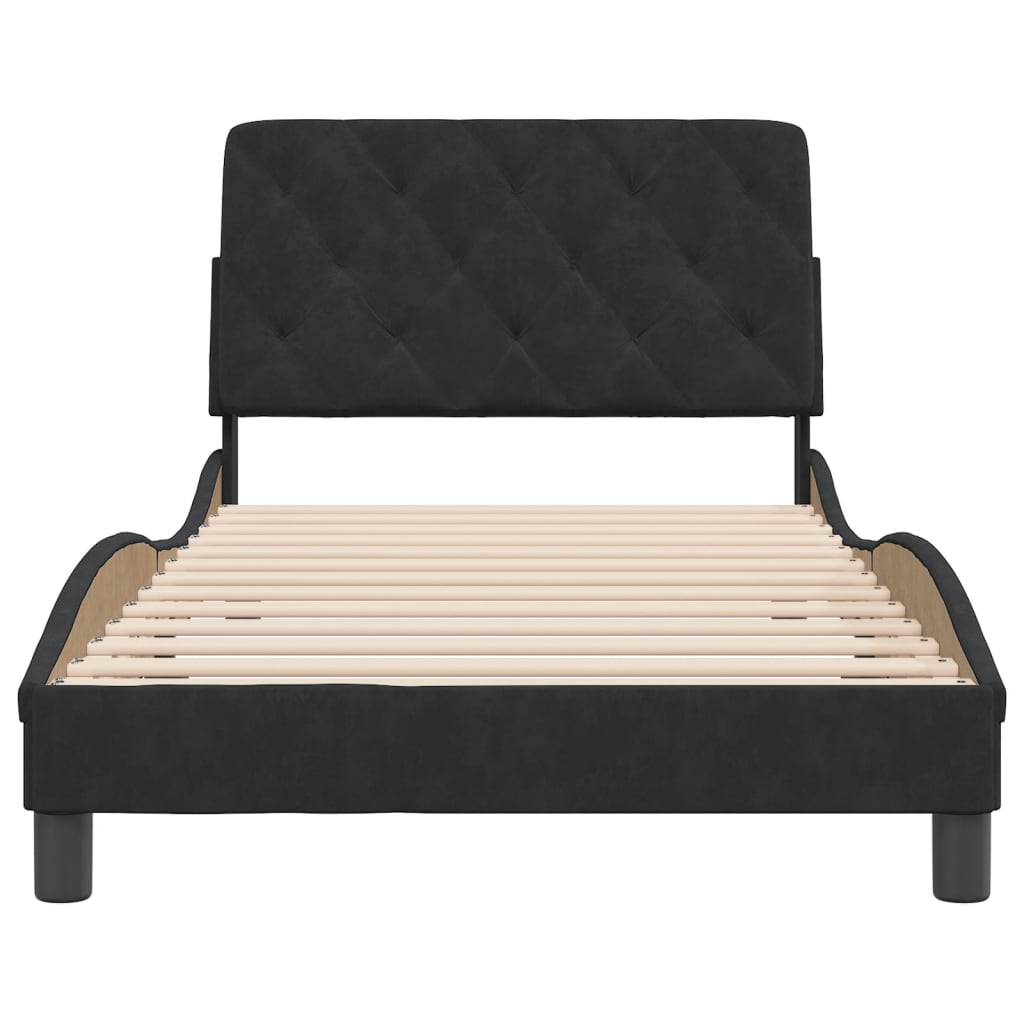 Cadru de pat cu tăblie, negru, 100x200 cm, catifea GartenMobel Dekor