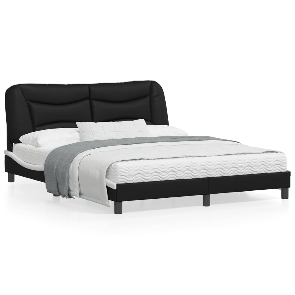 Cadru de pat cu tăblie, negru/alb, 160x200 cm, piele ecologică GartenMobel Dekor
