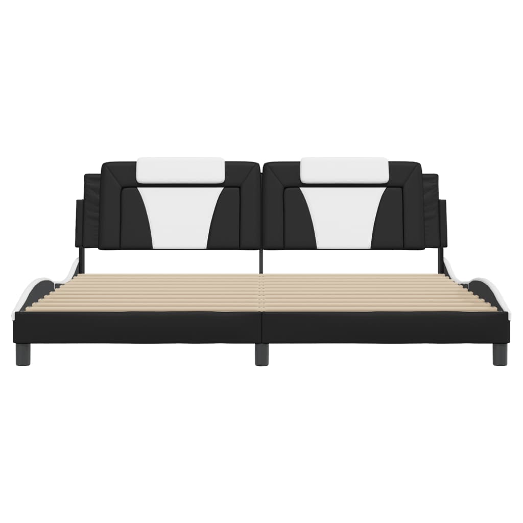 Cadru de pat cu tăblie negru și alb 200x200cm piele artificială GartenMobel Dekor