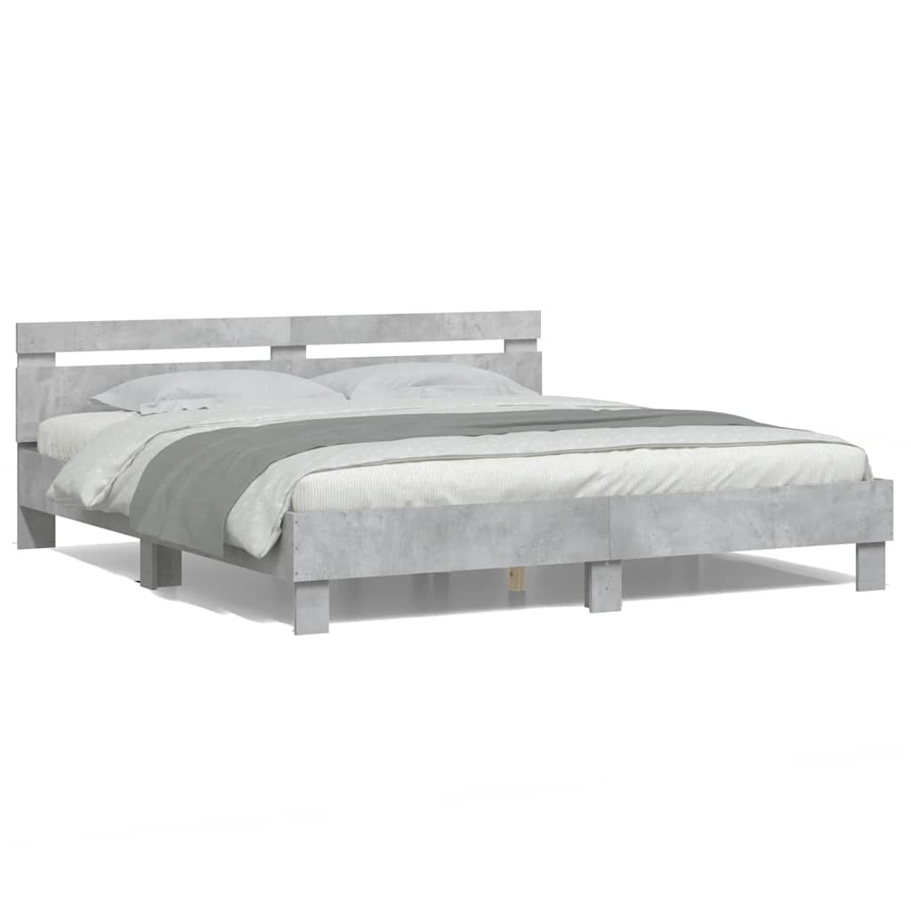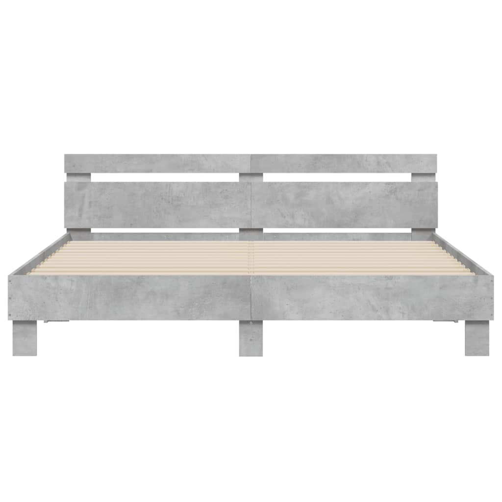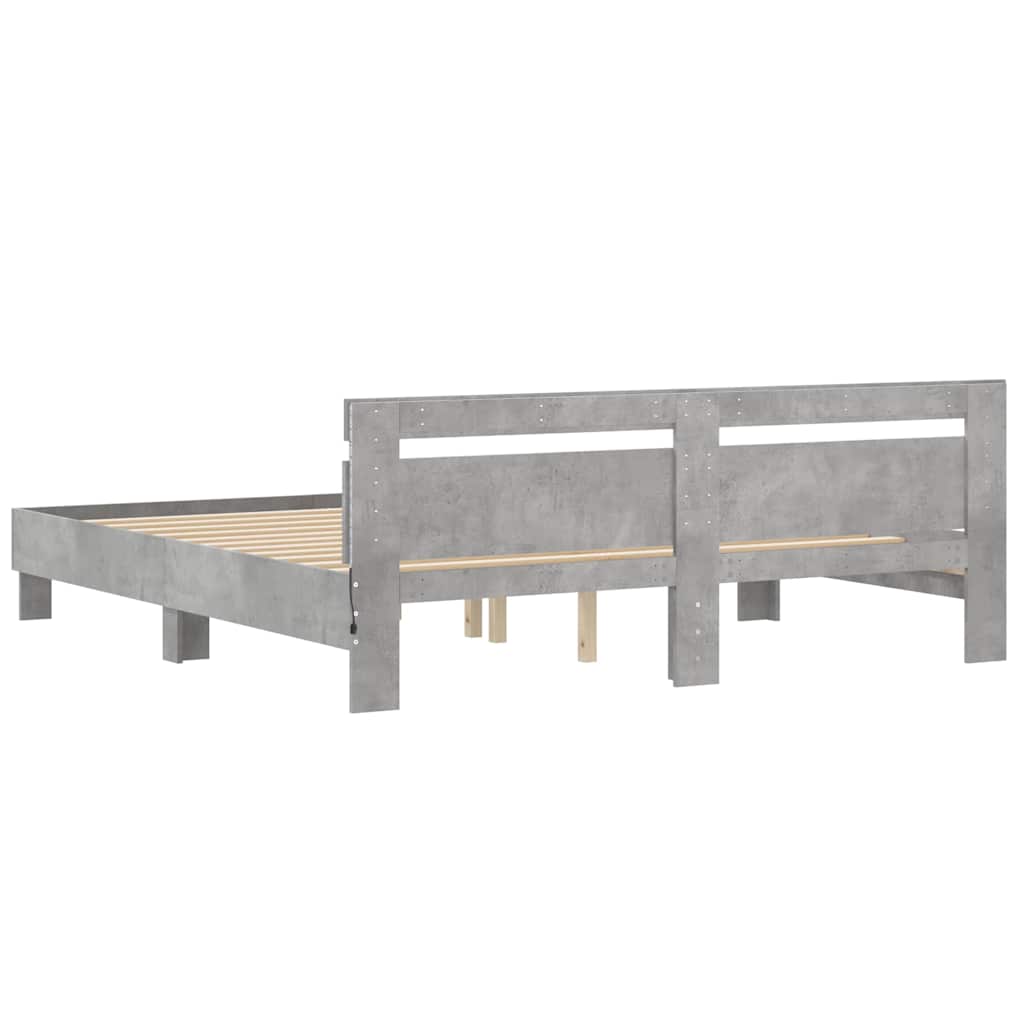 Cadru de pat cu tăblie și LED, gri beton, 160x200 cm GartenMobel Dekor