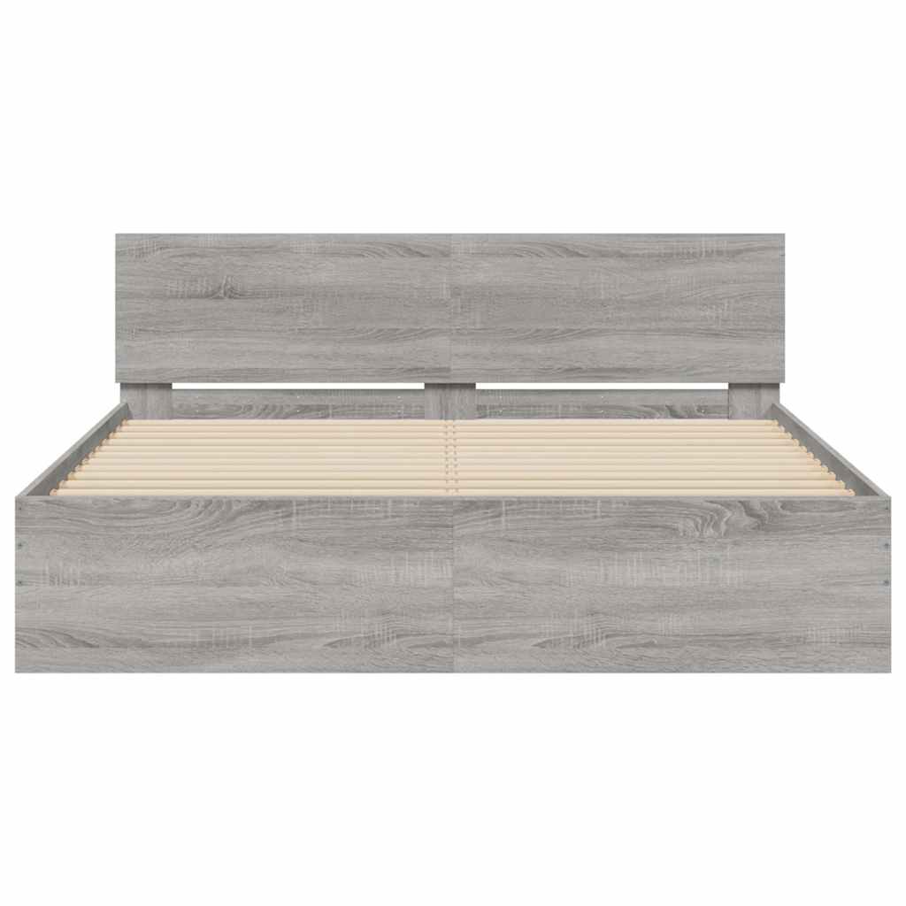 Cadru de pat cu tăblie și LED, gri sonoma, 160x200 cm GartenMobel Dekor