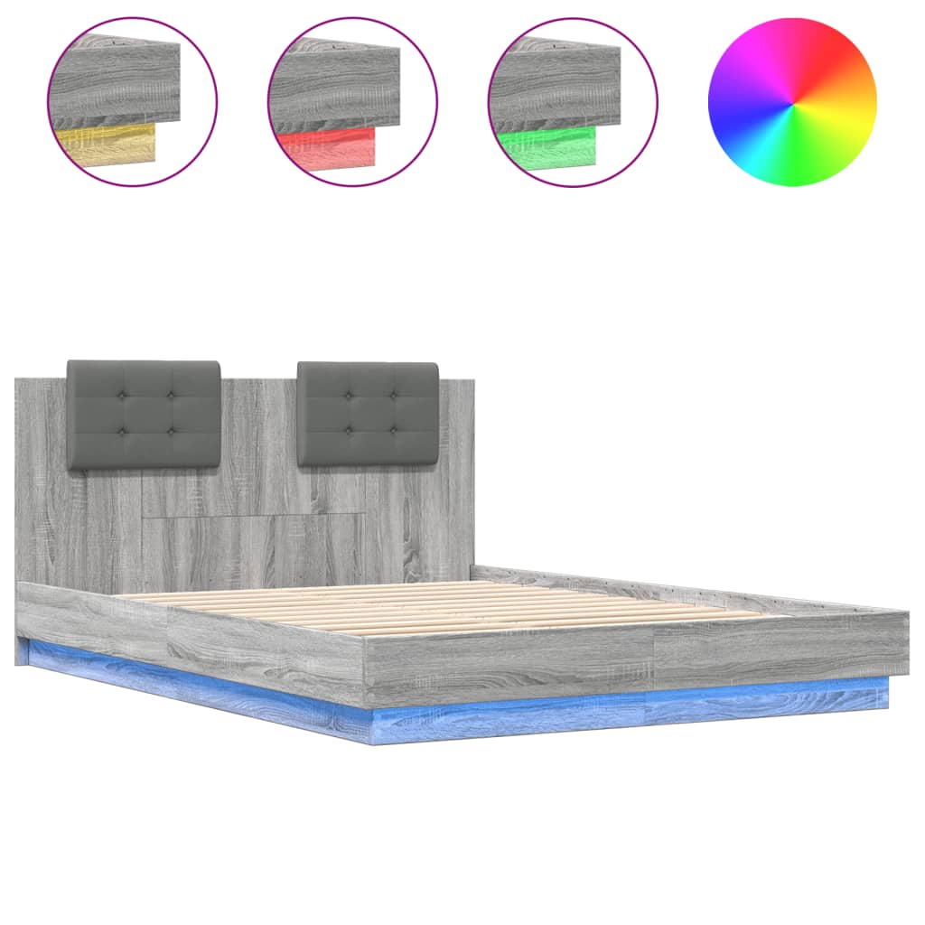 Cadru de pat cu tăblie și lumini LED, gri sonoma, 140x200 cm GartenMobel Dekor