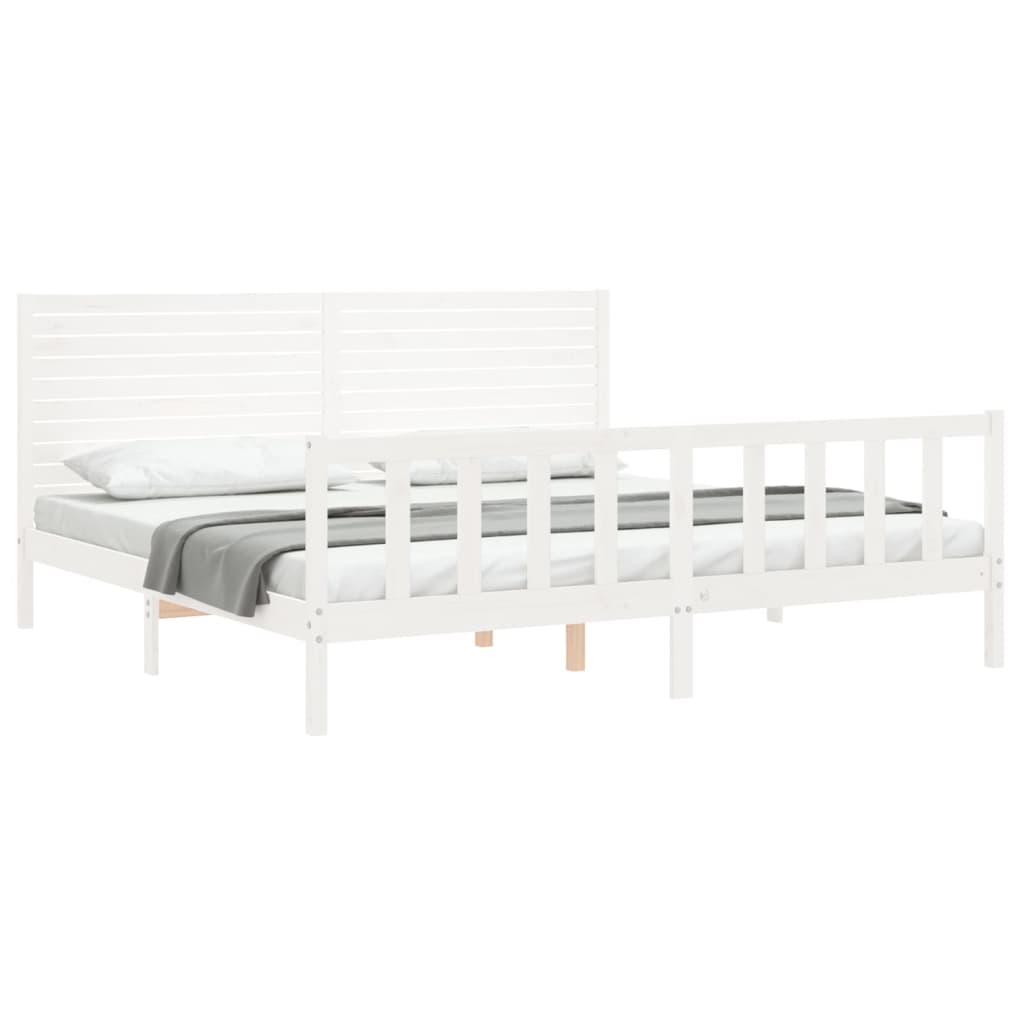 Cadru de pat cu tăblie Super King Size, alb, lemn masiv GartenMobel Dekor