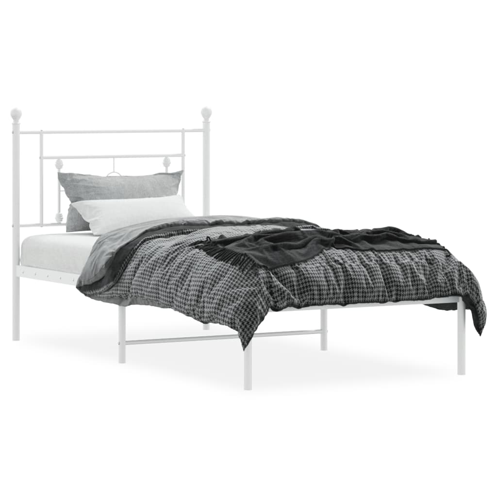 Cadru de pat din metal cu tăblie, alb, 100x200 cm GartenMobel Dekor