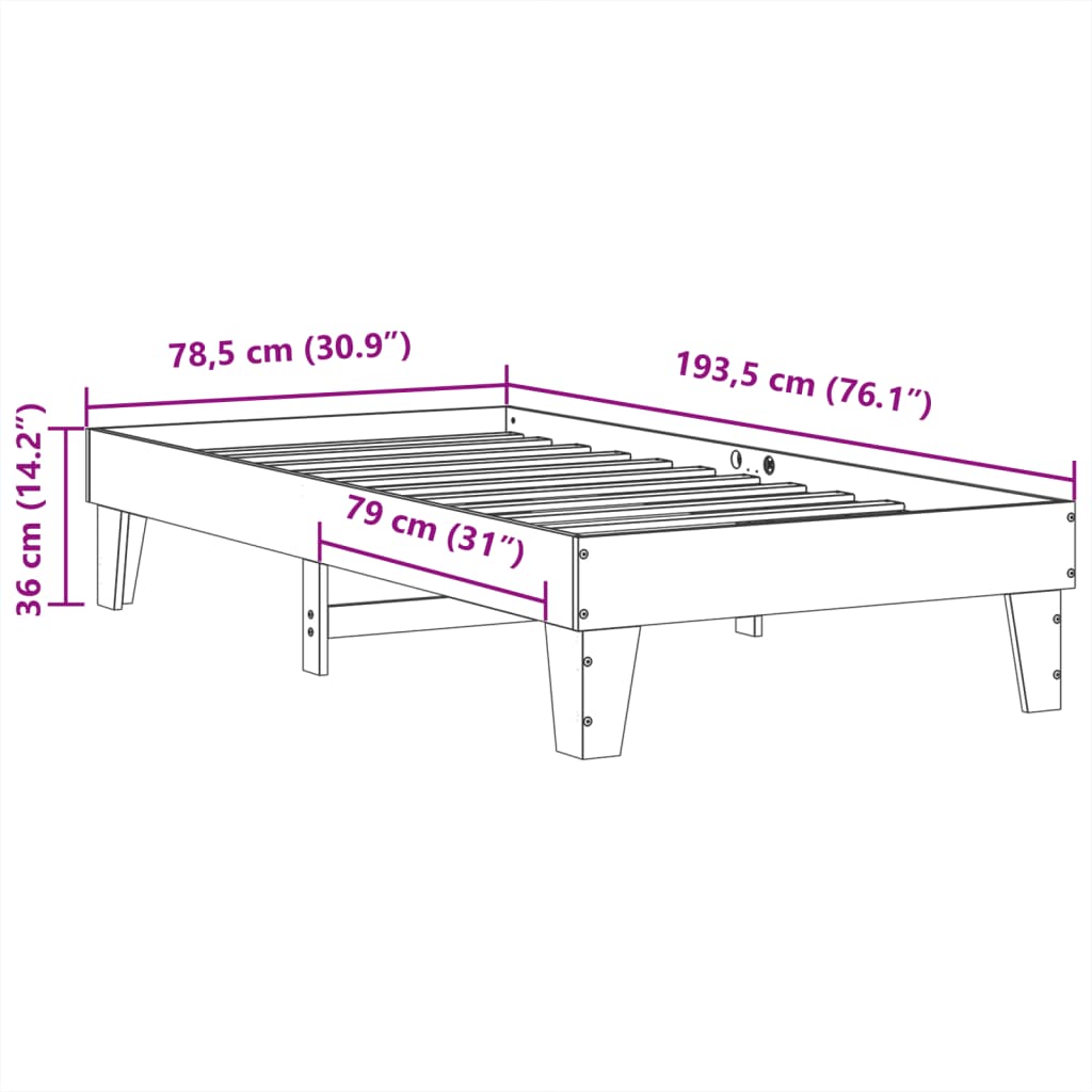 Cadru de pat fără saltea, 75x190 cm, lemn masiv de pin GartenMobel Dekor