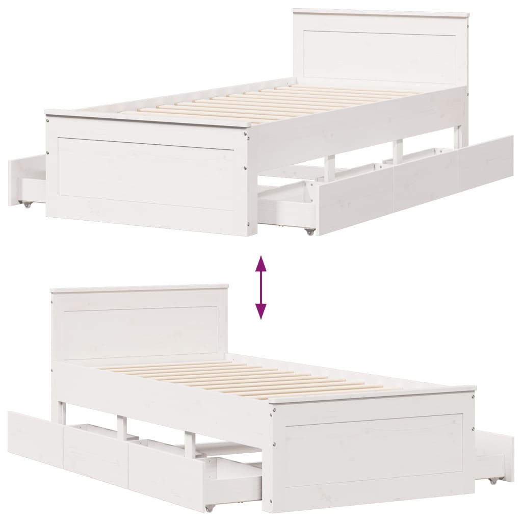 Cadru de pat fără saltea, alb, 75x190 cm, lemn masiv de pin GartenMobel Dekor