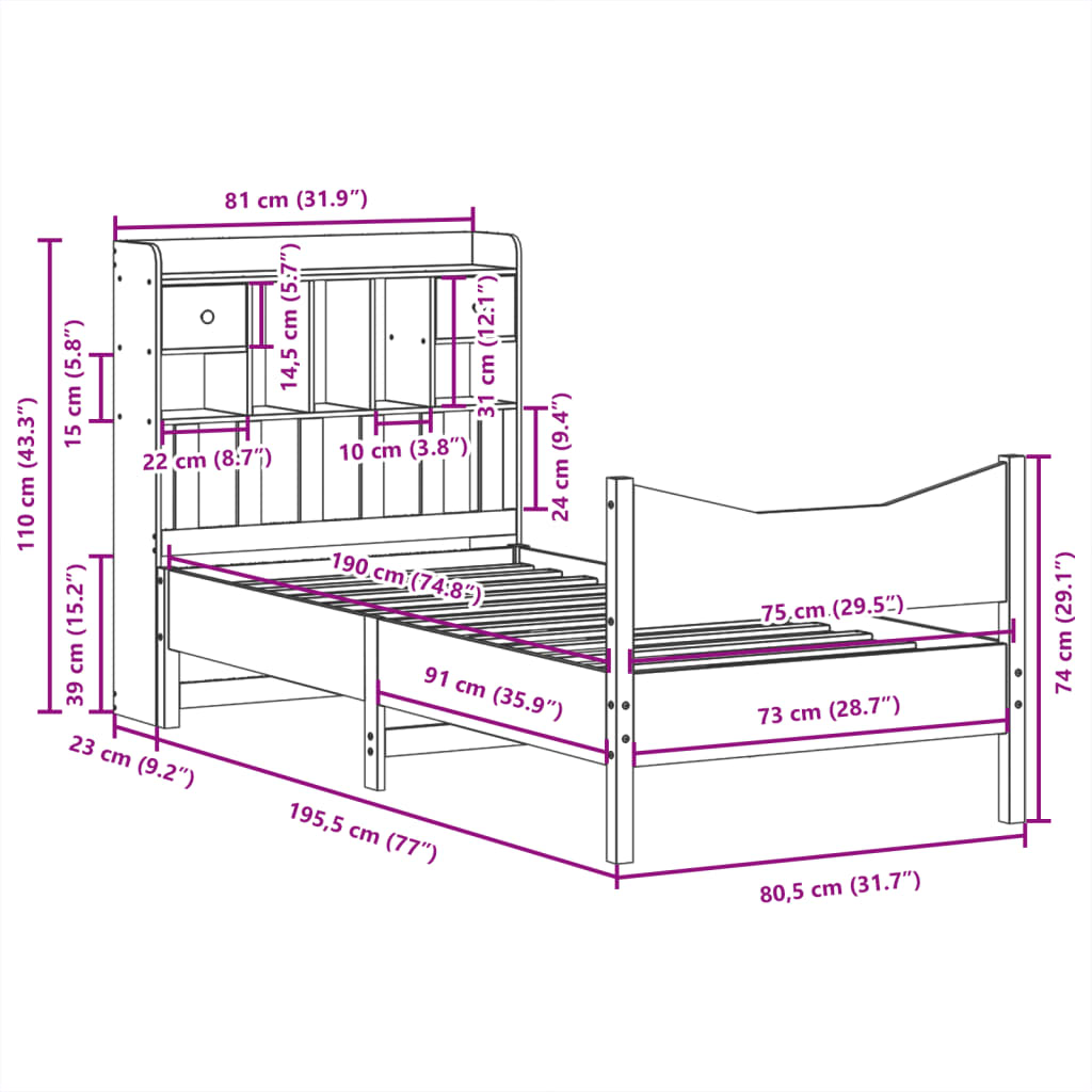 - Dimensiuni saltea potrivită: 75 x 190 cm (l x L) (salteaua nu este inclusă)