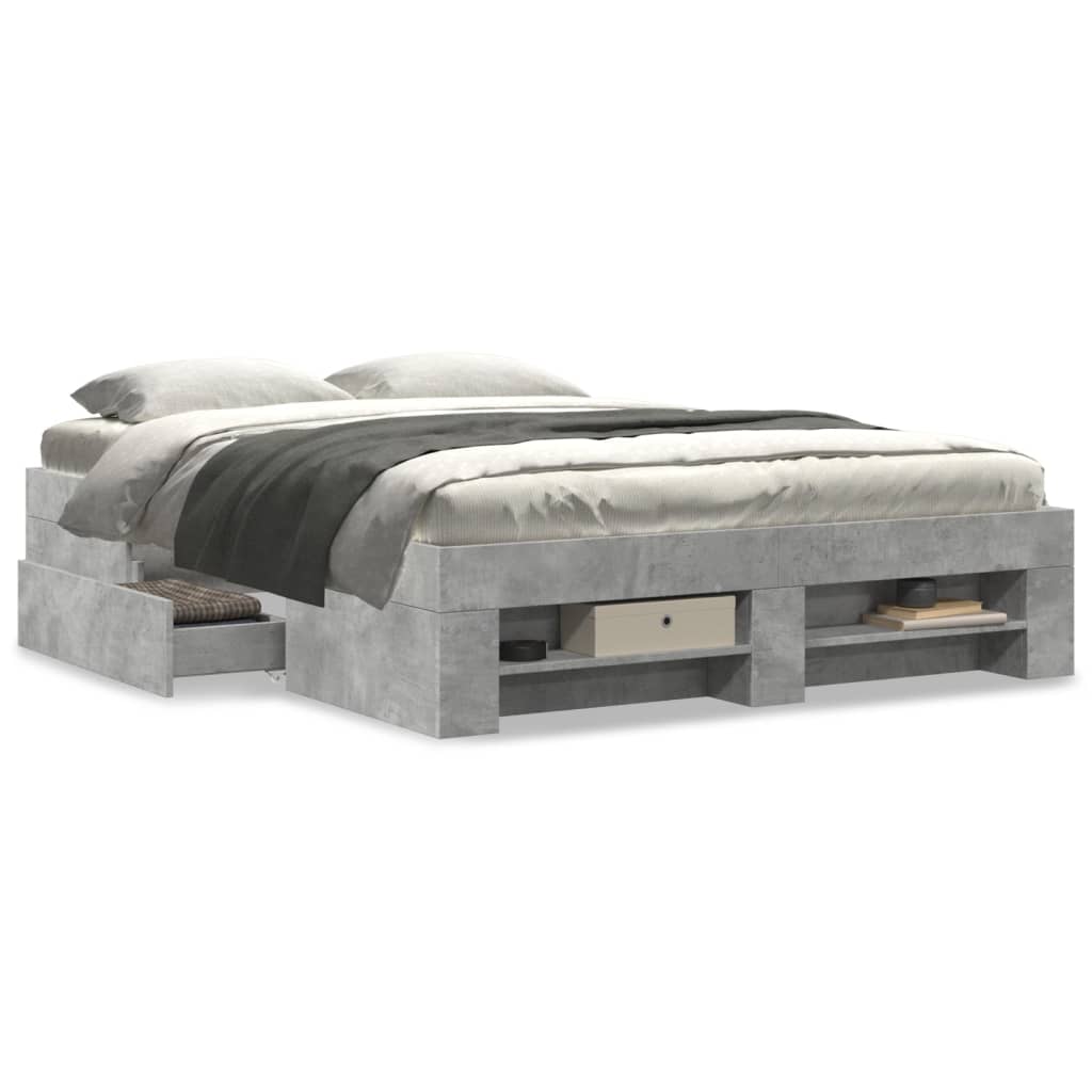 Cadru de pat, gri beton, 140x200 cm, lemn prelucrat GartenMobel Dekor